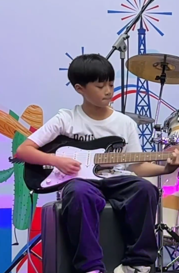 กลายเป็นโมเมนต์สุดน่ารักบนเวที เมื่อ พี่พายุ รังษีสิงห์พิพัฒน์ ลูกชายของซุปเปอร์สตาร์ ชมพู่ อารยา โชว์สกิลเล่นกีตาร์ไฟฟ้าแบบสุดเท่ จับคอร์ดแน่น ท่าทางคล่องแคล่ว แถมมีอินเนอร์ร็อกสตาร์มาเต็ม แม้จะมีความเขินเล็ก ๆ