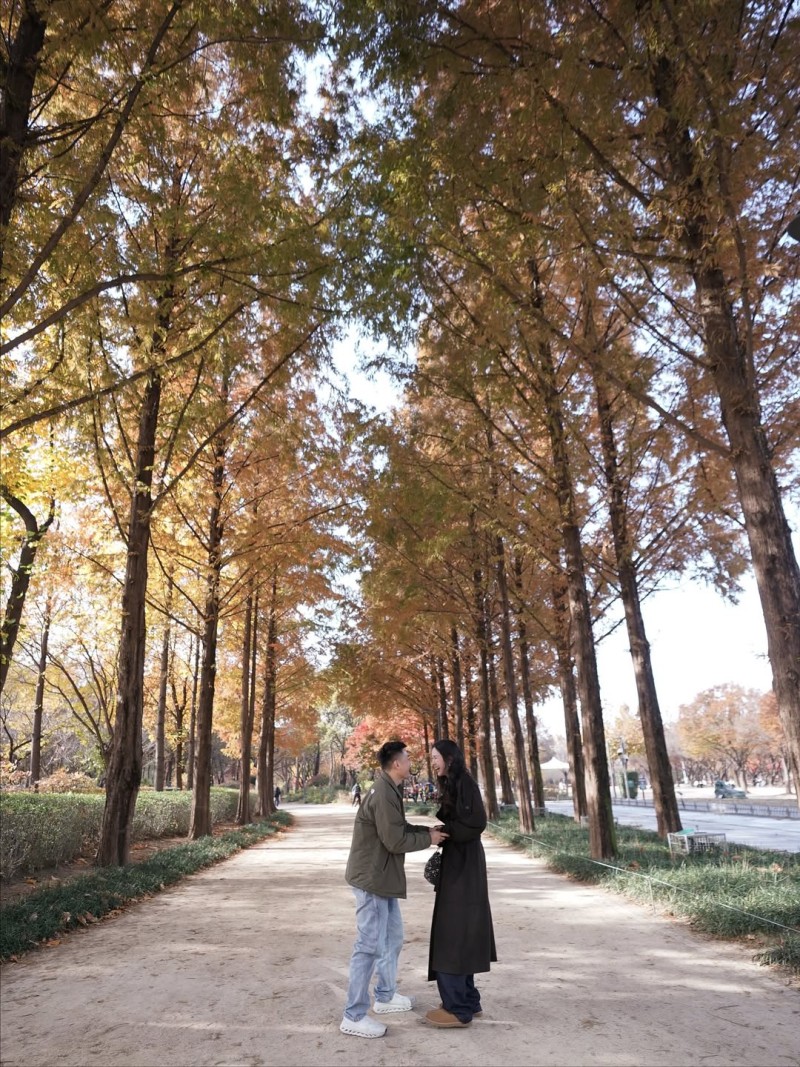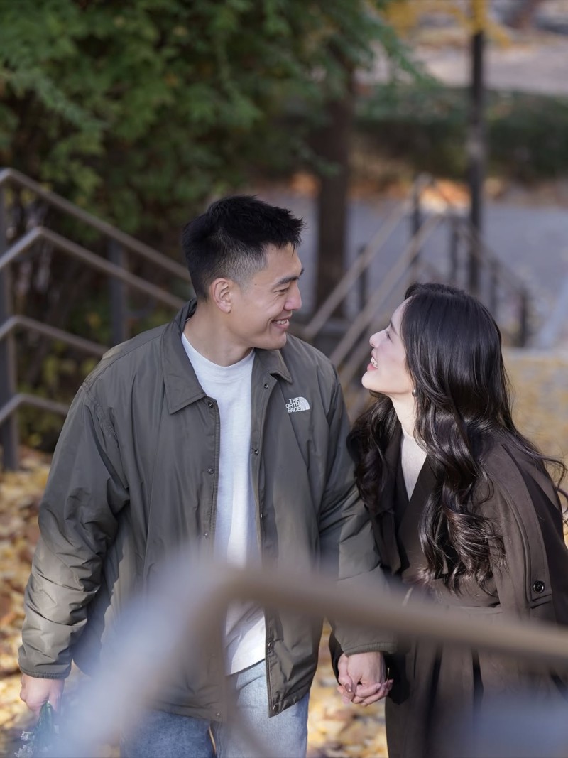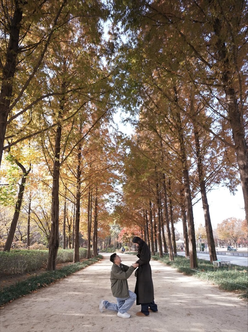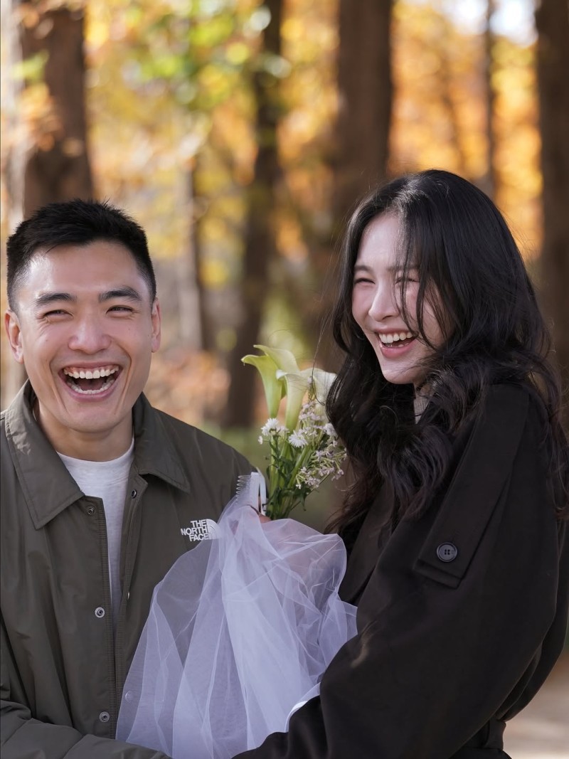 ภาพที่เจ้าตัวโพสต์ทำเอาแฟนๆ ยิ้มตาม เพราะบรรยากาศโรแมนติกเหมือนถ่ายพรีเวดดิ้ง ทั้งคู่เดินเล่นกลางป่าเมเปิ้ลสีส้มทอง ท่ามกลางแสงแดดอบอุ่น มีทั้งโมเมนต์จับมือ หัวเราะ เคียงข้างกันอย่างมีความสุข และช็อตสำคัญตอนฝ่ายชายคุกเข่าขอแต่งงานที่อบอุ่นสุดๆ
