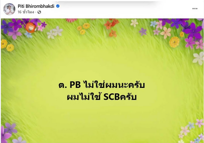 พร้อมอีกโพสต์ที่ตัดจบทุกความสงสัยว่า ต.PB ไม่ใช่ผมนะครับ ผมไม่ใช้ SCB ครับ