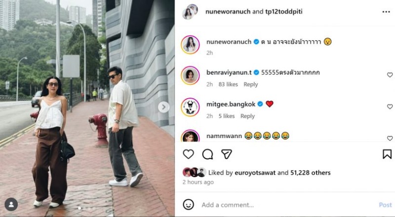 ล่าสุด นุ่น วรนุช ได้ออกมาเคลื่อนไหว ด้วยการสยบข่าวลือด้วยการลงรูปคู่หวานๆ กับคุณสาลงไอจี พร้อมแคปชั่นสั้นๆ แต่ได้ใจความว่า ต น อาจจะยังน้าาาาาา เรียกว่าตอบกลับแบบซอฟต์ๆ แต่ชัดเจนว่าไม่ใช่คู่ของเธออย่างแน่นอน