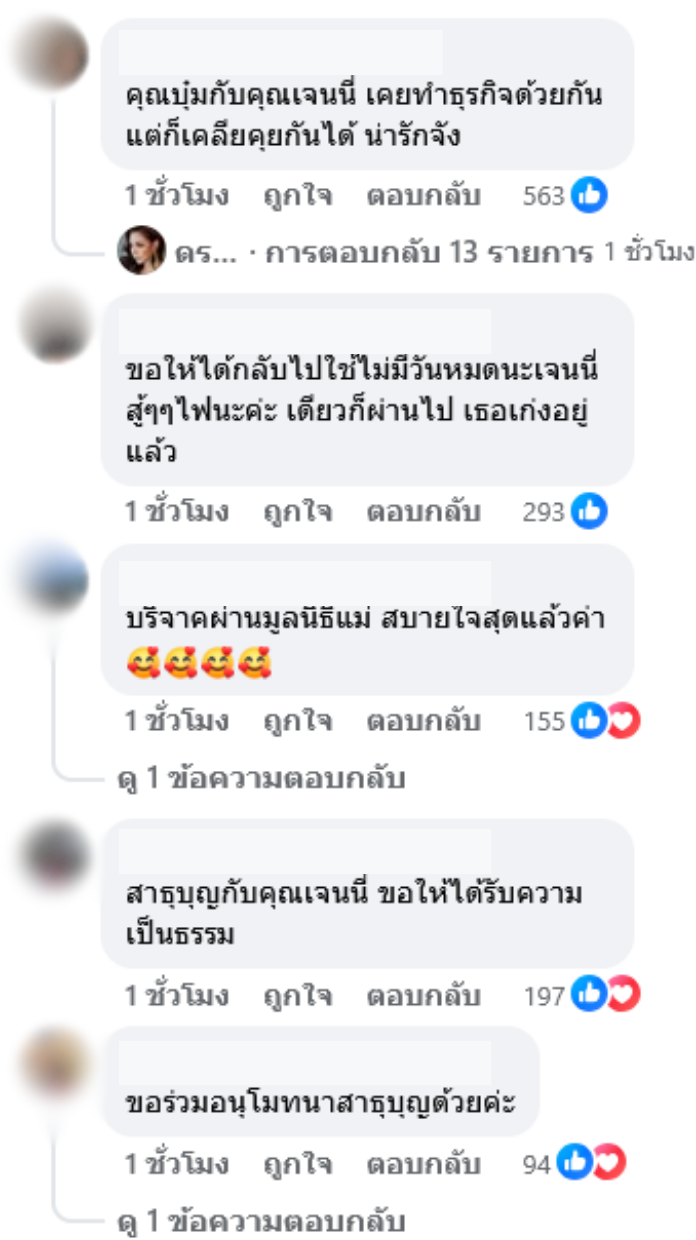 บุ๋มขอบคุณเจนนี่มากนะคะ ลำบากอยู่แต่ก็ยังนึกถึงกัน อยากให้โลกใจดีกับเธอมากกว่านี้ และขอให้ผลบุญนี้ทำให้เจนนี่ได้รับความเป็นธรรมด้วยค่ะ