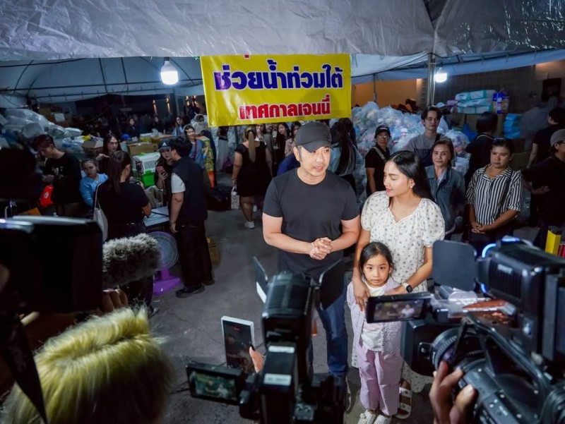 สถานการณ์น้ำท่วมที่อำเภอหาดใหญ่ จังหวัดสงขลายังส่งผลกระทบต่อประชาชนจำนวนมาก แม้ระดับน้ำเริ่มลดลง ล่าสุด เจมส์ เรืองศักดิ์ พร้อมครูก้อย นัชชา และลูกสาว น้องเมดา เดินทางมอบสิ่งของจำเป็น เช่น อาหาร น้ำดื่ม และของใช้ ให้ผู้ประสบภัยผ่านจุดรับบริจาคในงานเทศกาลเจนนี่
