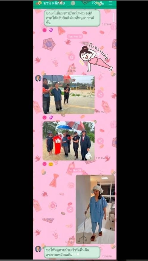 จะพยายามออกกำลังกายเบาๆทุกวันให้กลับมาเต็ม 100 อีกครั้ง พร้อมกับส่งภาพการทำงานของตนเองและให้กำลังใจสาวทับทิมด้วยว่า ขอให้หนูหายป่วยเร็ววันฟื้นคืนสุขภาพเหมือนเดิม