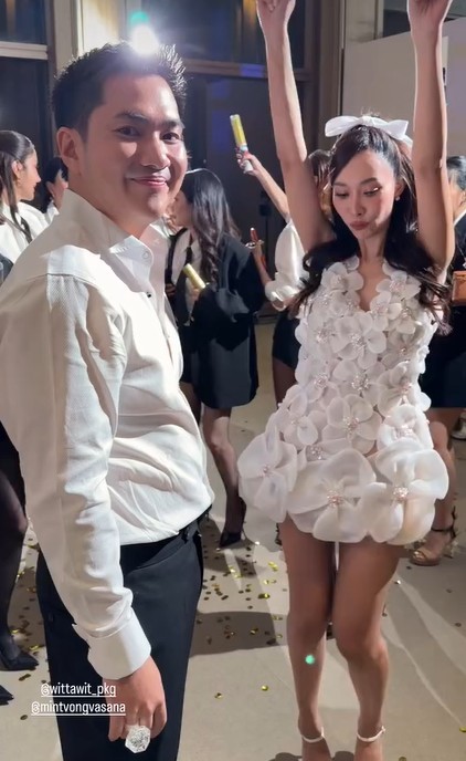 ก่อนอื่น ขอแสดงความยินดีกับเจ้าสาวคนสวย มิ้นท์ ณัฐวรา ได้ฤกษ์ดีควงแขนหวานใจ ไฮโซหยัง เข้าสู่ประตูวิวาห์เรียบร้อยแล้ว โดยเจ้าสาวปรากฏตัวในชุดแบรนด์ดีไซเนอร์ไทยที่ได้รับความนิยม Patarasiri พร้อมด้วยช่างแต่งหน้าชื่อดังอย่างน้องฉัตร เรียกได้ว่าเจ้าสาวสวยสะตา ออร่าพุ่งแบบสุดๆ