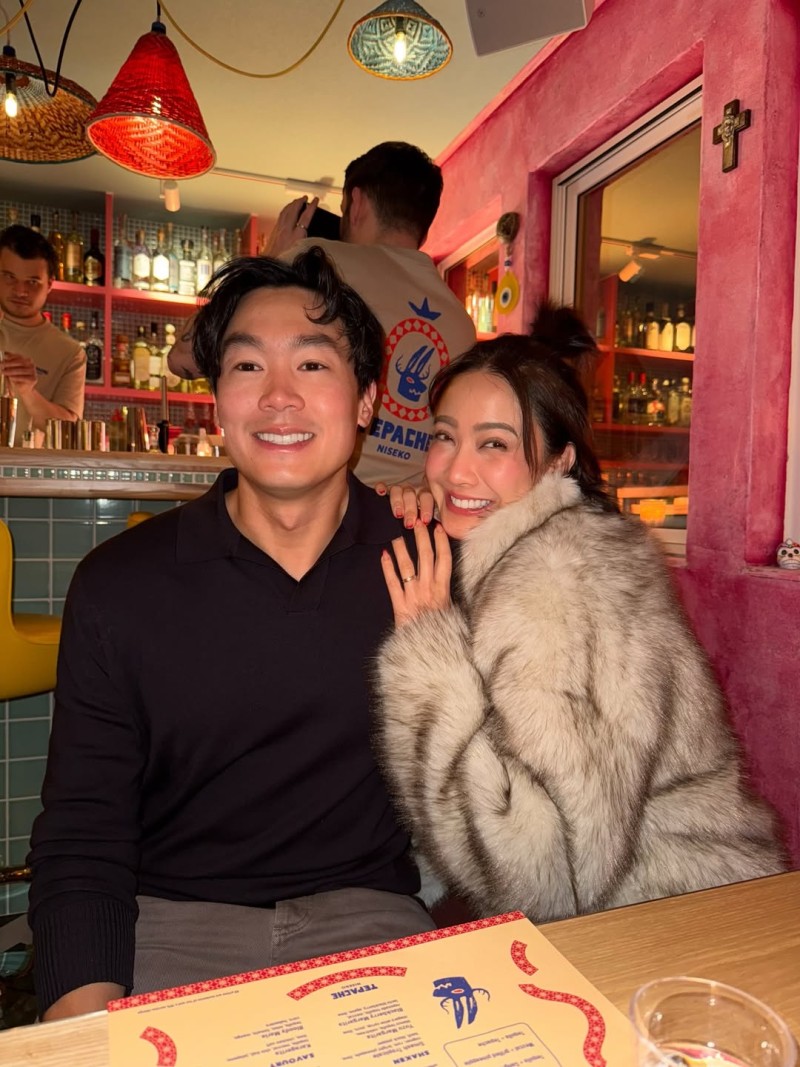 ล่าสุดทั้งสองได้เช็กอินไกลถึงประเทศญี่ปุ่น ก่อนมุ่งหน้าสู่เมืองนิเซโกะ เพื่อเล่นสกี ท่ามกลางวิวหิมะสุดโรแมนติก ทริปนี้ไม่ได้มีแค่ความหวานของสองสามีภรรยาเท่านั้น เพราะแต้วยังเผยภาพคู่รักคนสนิทที่ร่วมเดินทางมาแจมความสุขด้วย นั่นคือคู่ของนางเอกสาว แยม มทิรา กับแฟนหนุ่มนักธุรกิจ โบ้ท ณดล ชัยปาณี ที่คบหาดูใจกันมายาวนานกว่า 5 ปี