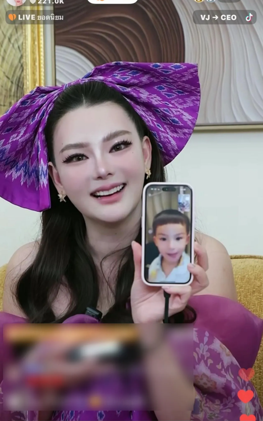 โดยระหว่างไลฟ์ขายของก็มีไฮไลต์สำคัญที่ทำเอาแฟนคลับใจละลาย นั่นคือการปรากฏตัวของ น้องไซลาส ลูกชายสุดที่รัก ซึ่งปัจจุบันอายุ 2 ขวบกว่าแล้ว บอกเลยว่ายิ่งโตยิ่งฉายแววความหล่อ พัฒนาการดี แววซุปตาร์มาเต็มตามรอยคุณแม่แบบติดสปีด