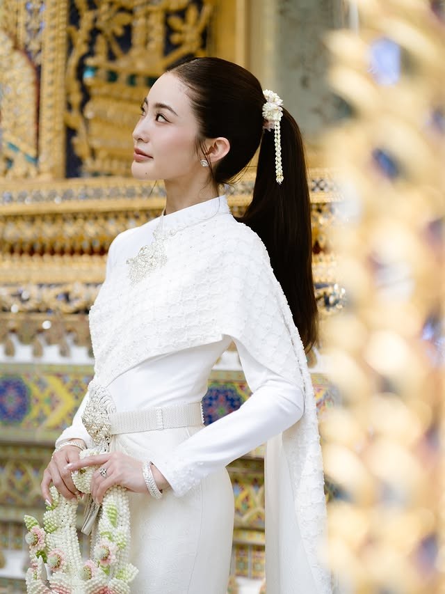 ชุดที่ 7 ชุดไทยศิวาลัยประยุกต์เช่นกัน ทั้งตัวเป็นชุดสีขาวบริสุทธิ์ ของแบรนด์ดัง Finale Weddingstudio