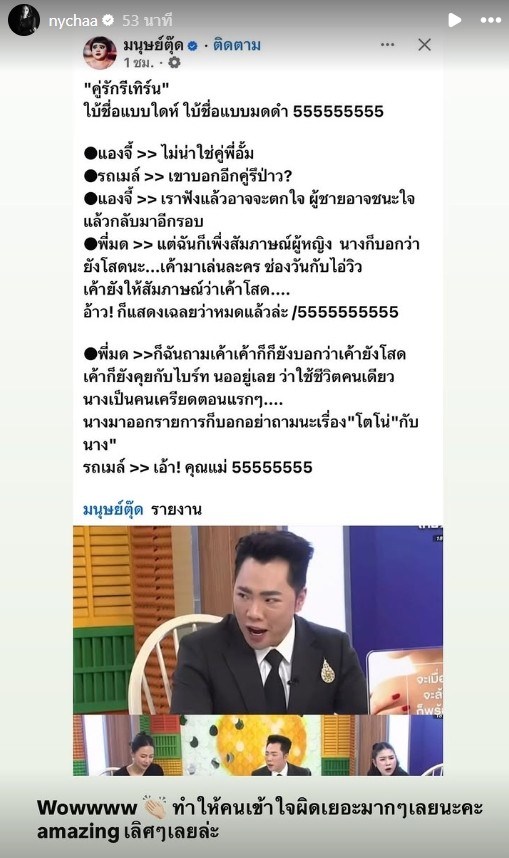 จากประเด็นร้อนข่าวลือนางเอกดังมากรีเทิร์นแฟนเก่า หนึ่งในชื่อที่ถูกโยงคือณิชา ล่าสุด ในไอจีสตอรี่ของนางเอกสาว ณิชา ณัฏฐณิชา หลังถูกโยงไปถึงเรื่องดังกล่าว