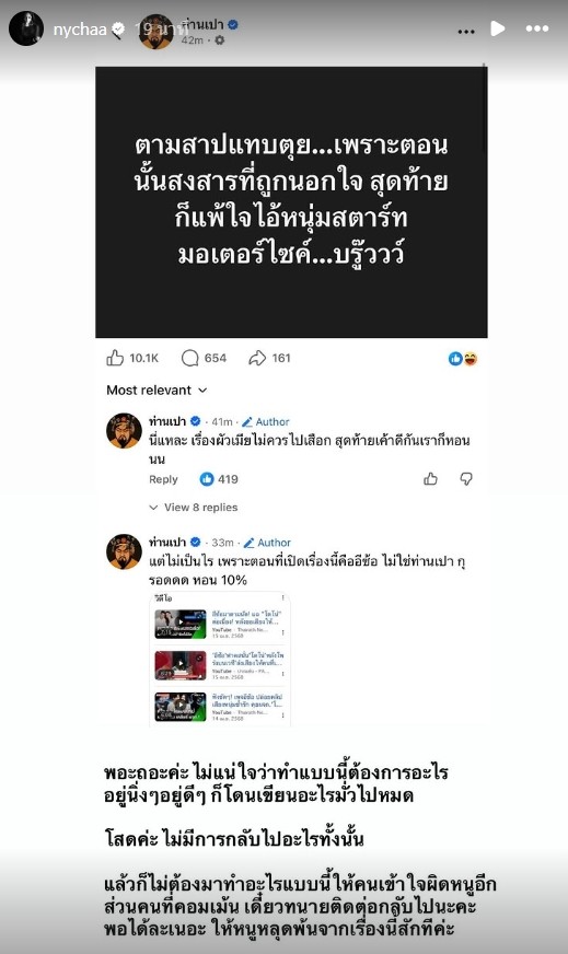 ส่วนคนที่คอมเมนต์ เดี๋ยวทนายติดต่อกลับไปนะคะ พอได้ละเนอะ ให้หนูหลุดพ้นจากเรื่องนี้สักที และเนื่องจากมีคนเข้าใจผิดว่าข่าวคู่รักรีเทิร์นเป็นหนูเยอะมากๆ