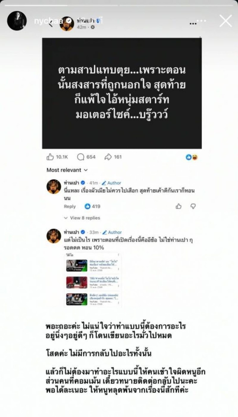 ถูกโยงจนต้องออกมาชี้แจงเลยทีเดียว สำหรับ นักแสดงสาว ณิชาที่ ถูกเพจและบุคคลบางส่วนเผยแพร่ข่าวลือว่า กลับไปรีเทิร์นความสัมพันธ์กับอดีตคนรัก โตโน่ ภาคิน จนสร้างความเข้าใจผิดและกระทบต่อชื่อเสียงของเจ้าตัว ถึงขั้นที่ต้องออกมาโพสต์เดือดกลางอจีสตอรี่