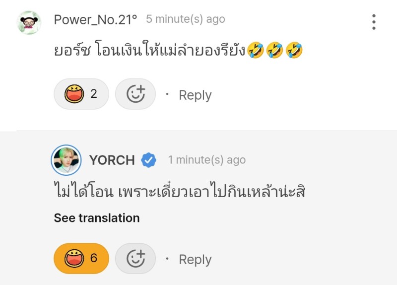 แน่นอนว่าเรื่องนี้ก็ไปถึงหูยอร์ชเป็นที่เรียบร้อย เมื่อ FC ไปถามยอร์ชว่า ยอร์ชโอนเงินให้แม่แล้วหรือยัง ทำเอานักร้องหนุ่มถึงกับรีบเบรคทันทีว่า ไม่ได้โอนเพราะเดี๋ยวเอาไปกินเหล้าน่ะสิ