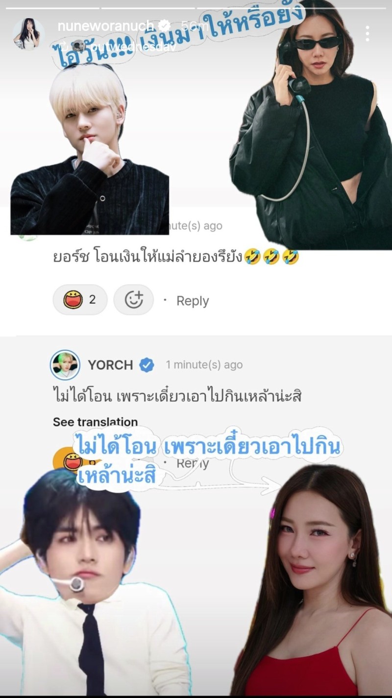 และจากโพสต์ดังกล่าวด้านนุ่นเองก็ได้มีการแชร์ลงสตอรี่ไอจีด้วยแต่งานนี้ยอร์ชเขาสบายใจได้ไม่ต้องห่วง เพราะแม่ลำยองเขามีสามีเป็นถึงทายาทสิงห์เลยนะ