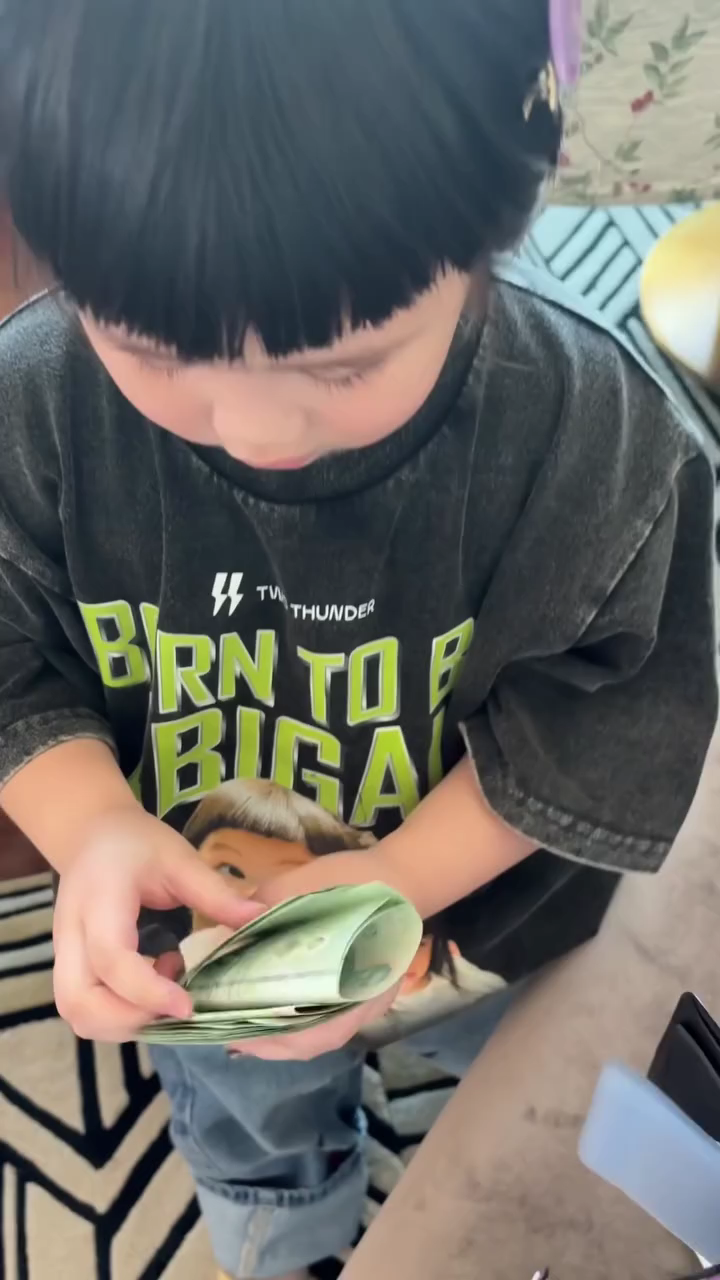 โมเมนต์ตอนเอาเงินออกมานับ โชว์ควักเงินจากกระเป๋ากางเกงออกมา ดูท่าทรงเสี่ยเกลมาก แถมยังยกขึ้นมาโชว์ด้วยความภูมิใจว่ามีแบงค์เทาด้วยนะ