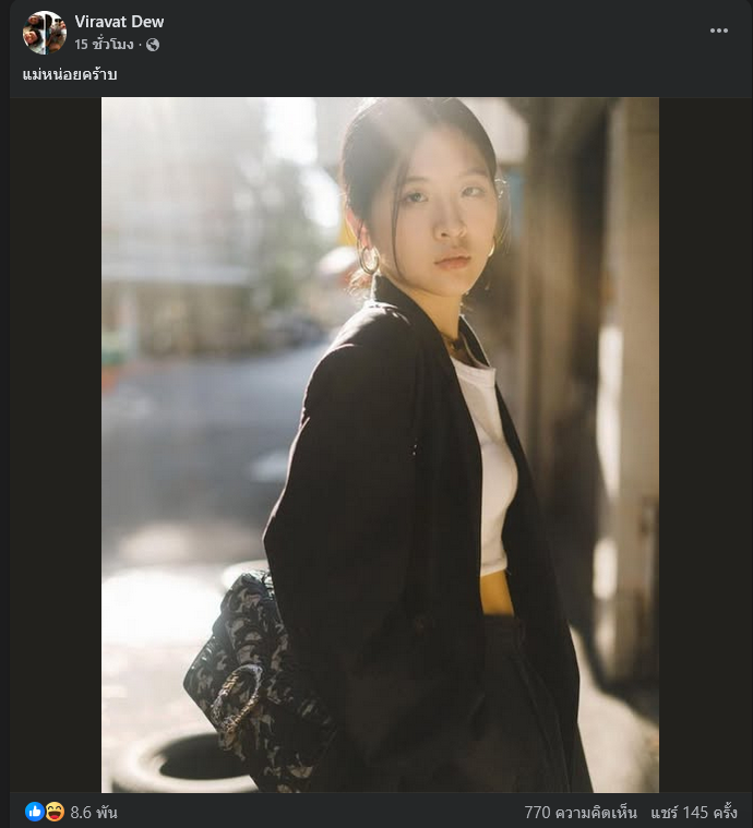 ล่าสุด เฟซบุ๊ก Viravat Dew โพสต์ภาพ จินนี่ พร้อมแคปชั่นว่า แม่หน่อยคร้าบ ท่ามกลางคอมเมนต์เข้ามาชมความน่ารักของสาวจินนี่เป็นจำนวนมาก