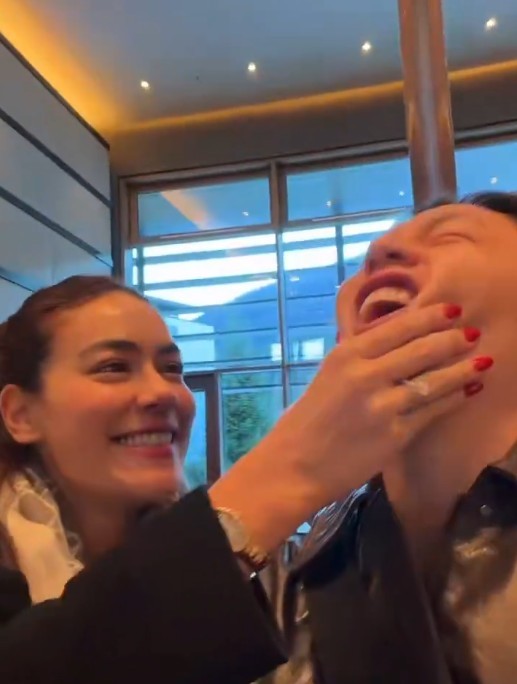 แต่นอกจากจะพูดคุยถึงทริปนี้แล้ว ทั้งคู่ก็ยังถูกถามถึงงานละคร หลังไม่ได้ลงจอกันมานานเช่นกัน งานนี้แฟนๆเลยคอมเมนต์ว่าอยากเห็นคิมเบอร์ลี่เล่นบทร้ายๆบ้าง หนุ่มหมากที่อ่านเจอความเห็นนี้ก็แซวภรรยาตัวเองทันที ว่าเห็นทุกวัน สาวคิมถึงกับหยุมออกมาไลฟ์เลยทีเดียว
