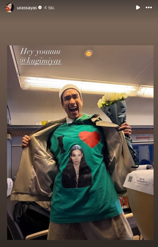งานนี้ทำเอาคนโสดตุยเรียบไปแล้วกับความหวานของทั้งคู่ ทำเขินทั้งสนามบิน เท่านั้นยังไม่พอยังเพิ่มความหวานของแบบทะลุจอเข้าไปอีก เมื่อณเดชน์ใส่เสื้อสีเขียว เป็นเสื้อที่สกรีนบอกรักแฟนสาว มีข้อความ I Love Yaya ที่นอกจากตัวอักษรแล้ว ก็ยังสกรีนภาพญาญ่าแบบชัดๆ