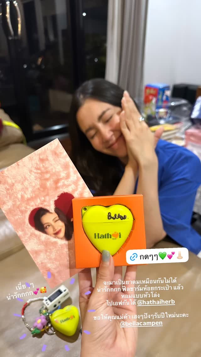 ล่าสุด เบลล่าสร้างความฮือฮาอีกครั้ง ด้วยการเปิดตัวธุรกิจใหม่อย่างเป็นทางการ กับ ยาดมสมุนไพรแบรนด์ หทัยเฮิร์บ (Hathai Herb) ที่โดดเด่นด้วยแพ็กเกจดีไซน์สุดน่ารัก ฟรุ้งฟริ้ง ทันสมัย ฉีกภาพจำยาดมแบบเดิมๆ ให้กลายเป็นไอเทมเก๋ที่ทั้งใช้ได้จริงและหยิบมาถ่ายรูปสวยๆ ได้