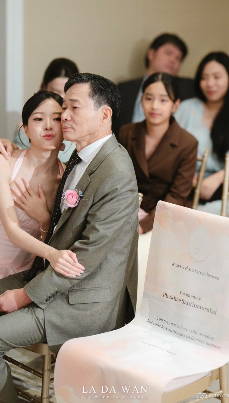 เมื่อลูกน้ำ เธอได้จัดมุมพิเศษ ด้วยการเว้นที่นั่งให้กับแขกคนสำคัญที่สุดในชีวิต คุณแม่เพ็กแฮ ผู้ล่วงลับ ไว้เคียงข้าง คุณพ่อปรีชา