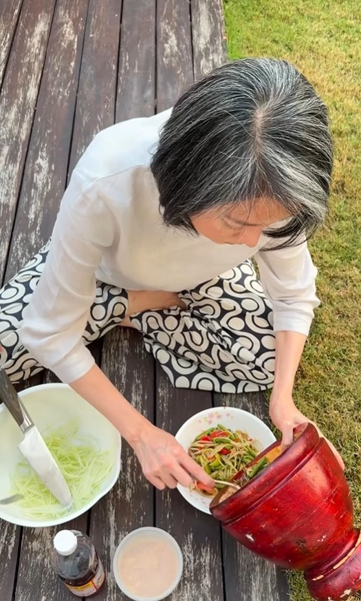 โดยเมนูที่ตั้งใจลงมือทำก็คือ ส้มตำ รสแซ่บสุดจัดจ้าน แค่เห็นหน้าตาและสีสันในครกก็บอกเลยว่าน่ากินสุดๆ ทั้งแซ่บ ทั้งนัว ดูใส่ใจในทุกขั้นตอน สมกับทำเพื่อคนพิเศษจริงๆ จนแฟนคลับที่ได้เห็นต่างพากันใจฟู และอดยิ้มตามไม่ได้เลยทีเดียว