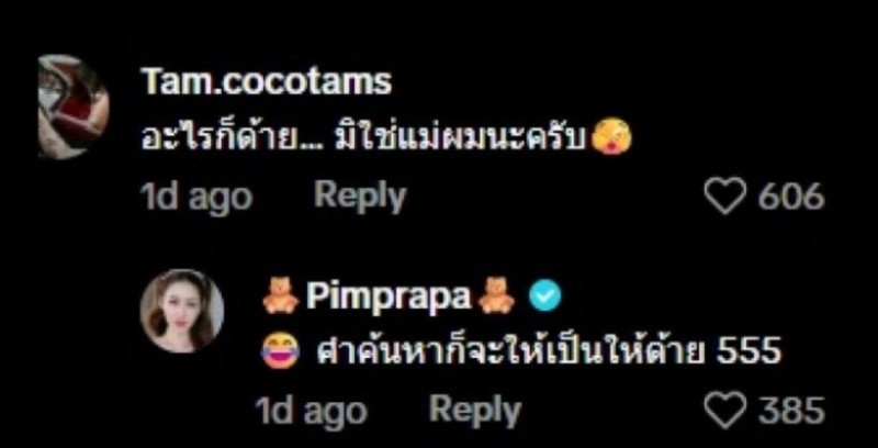 ทำให้สาวพิมถูกโยงเข้ามาในทันที แต่ล่าสุดคดีพลิกเมื่อไฮโซแทมได้เข้าไปคอมเมนต์ตอบกลับในคลิปข่าวดังกล่าวสั้นๆ ว่า มิใช่แม่ผมนะครับ เพื่อยืนยันว่าไม่ใช่คู่ของตน