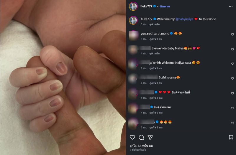 หลังจากที่ได้โพสต์ภาพและข้อความดังกล่าวออกไป ต่างมีชาวเน็ตเข้ามาแสดงความคิดเห็นและยินดีกันเป็นจำนวนมาก อีกทั้งยังโฟกัสภาพนิ้วมือที่เรียงกันอย่างสวยงามของเบบี้ที่จับคุณพ่อไว้อยู่