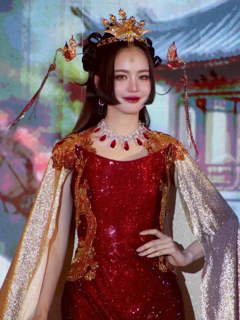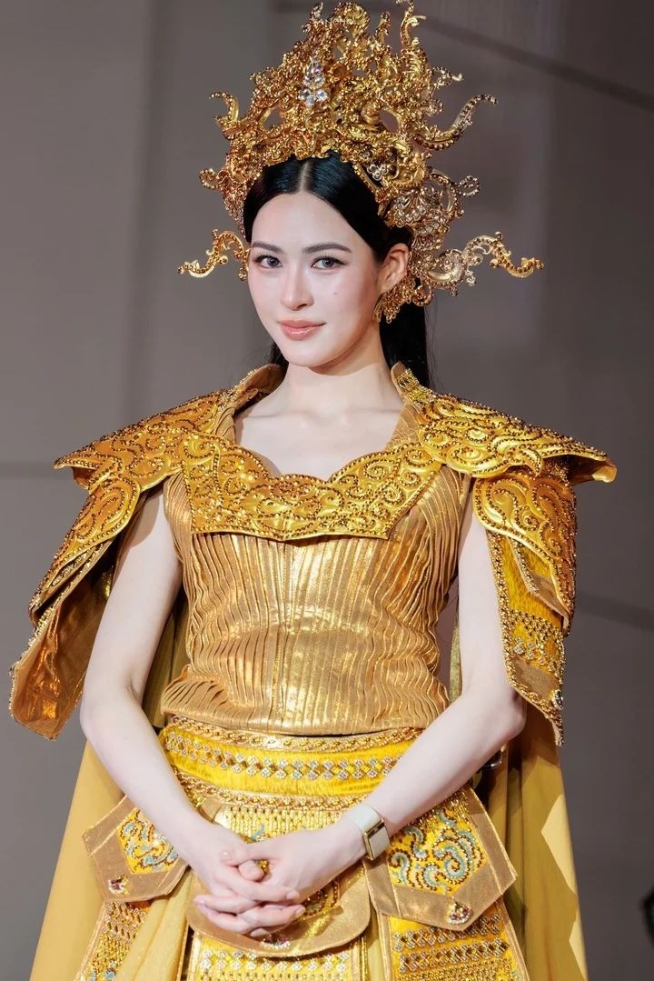 คนที่ 2 ออม กรณ์นภัส ถัดมาที่นักแสดงสาวสวยอีกคนออม กรณ์นภัส ปรากฎตัวด้วยชุดสีทองอร่ามเช่นกัน ภายใต้คอนเซ็ปจักพรรดิ