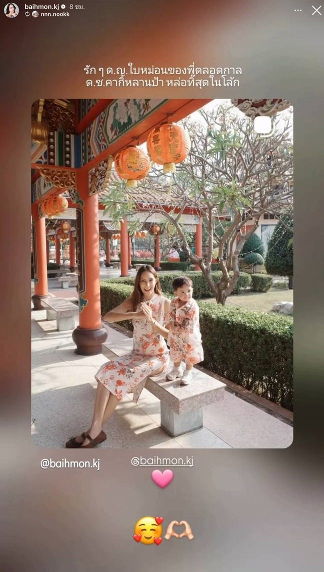 ล่าสุดฝ่ายหญิงได้เคลื่อนไหวแล้ว โดยใบหม่อนได้รีโพสต์สตอรี่จากคนใกล้ชิดที่ส่งกำลังใจให้เธอและลูกชาย น้องคากิ พร้อมข้อความให้กำลังใจอย่างอบอุ่น
