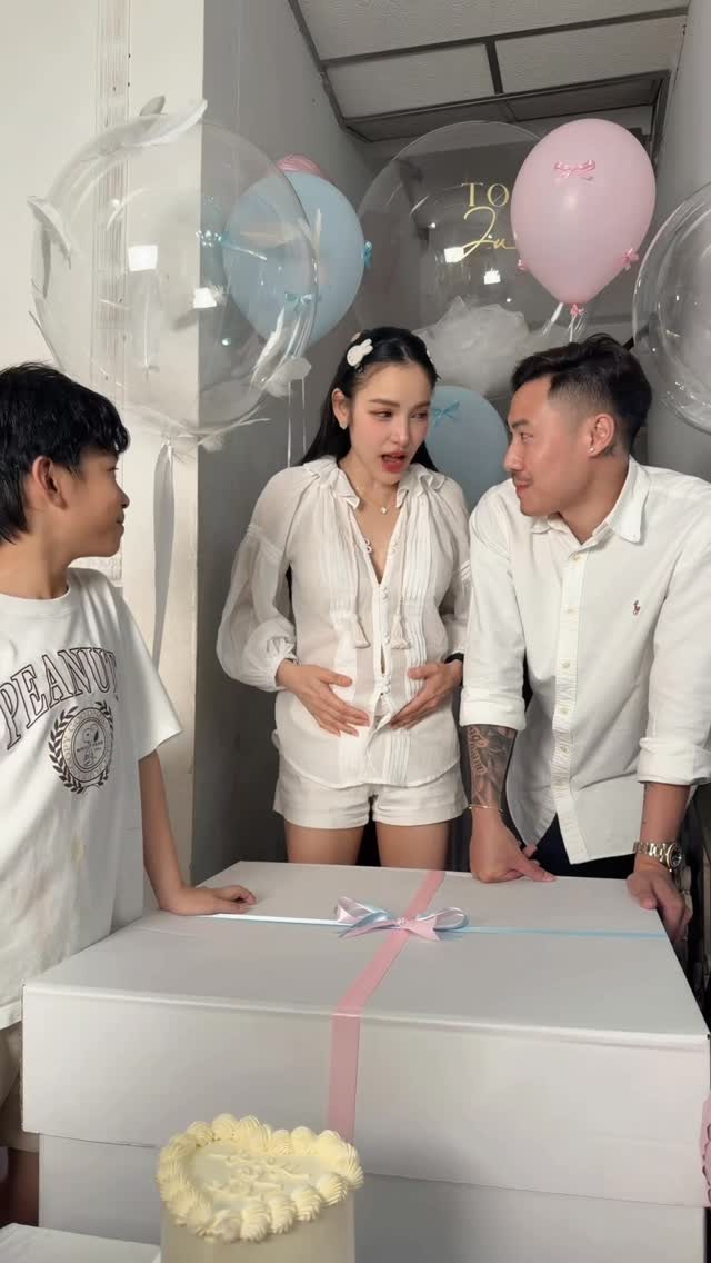 ล่าสุดแม่แพทได้จัดปาร์ตี้เฉลยเพศลูกแบบอบอุ่น พร้อมหน้าครอบครัวและคนสนิท โดยช่วงไฮไลต์คือการเปิดกล่องลูกโป่ง ทันทีที่ลูกโป่งสีชมพูลอยออกมา ก็ทำให้รู้ทันทีว่า เบบี๋ในท้องคือ ลูกสาว ทำเอาทั้งพ่อพีและแม่แพทดีใจกันสุดๆ ขณะที่ น้องเรซซิ่ง ก็เตรียมเลื่อนตำแหน่งเป็นพี่ชายเต็มตัวแล้ว