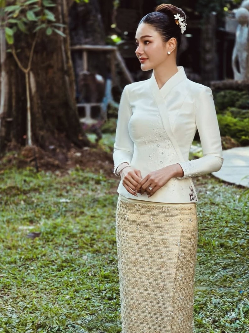 คนที่ 3 ยิหวา ปรียากานต์ ปิดท้ายกันที่นักแสดงสาวมากฝีมือ .ถือว่าเป็นเจ้าสาวตั้งแต่ต้นปีกันเลยทีเดียวเจ้าสาวเองก็ปรากฎตัวด้วยชุดล้านนาที่สวยสะกดมากๆ ดูอ่อนหวานออร่าฉ่ำแบบสุดๆโดยทางห้องเสื้ออกแบบมาอย่างปราณีต สวมเสื้อป้ายแบบพื้นเมืองตัดจากผ้าไหมทอมือสีขาวงาช้างปักประดับเลื่อมและลูกปัด