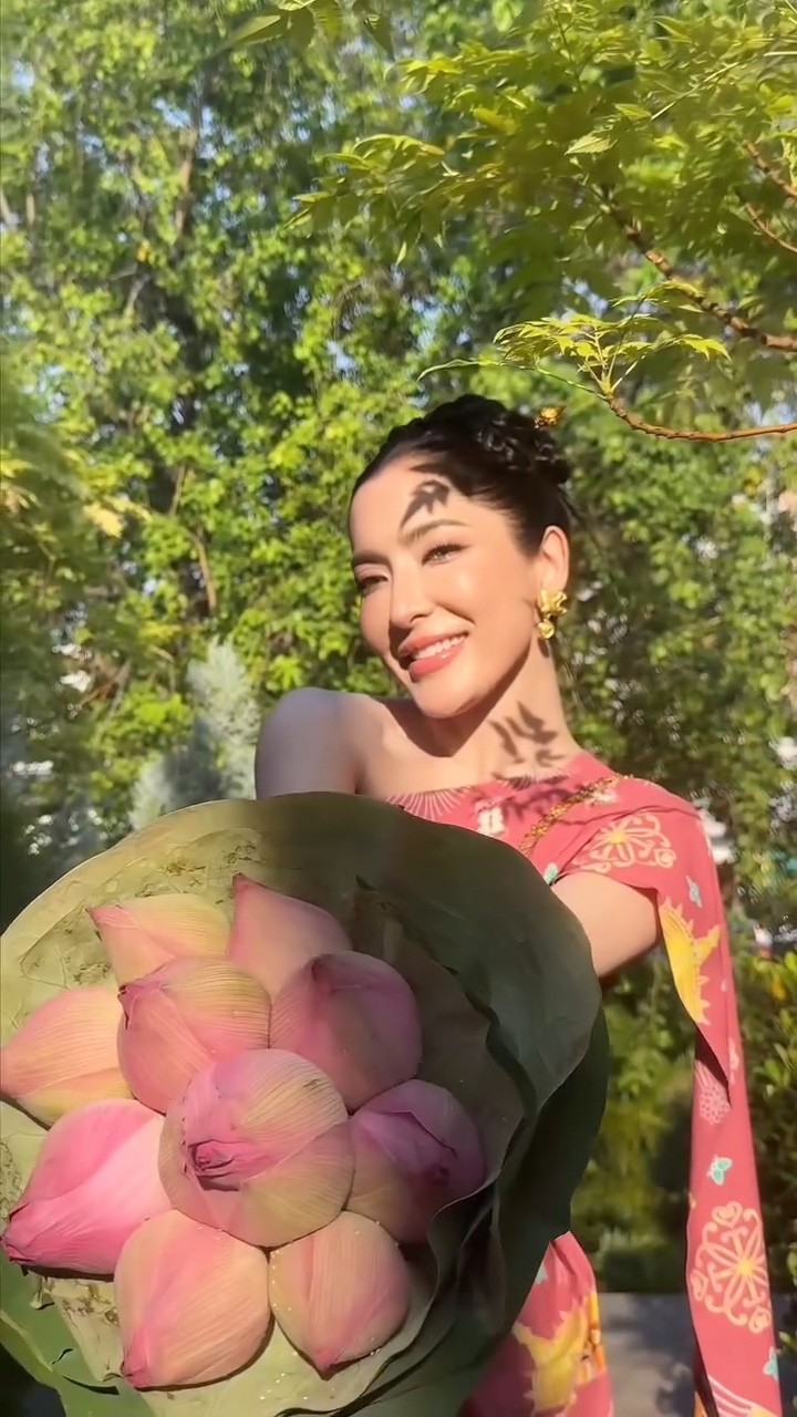 คนที่ 1 ใหม่ ดาวิกา พรีเซ็นความเป็นไทยสุดๆ ขอร่วมเทรนด์ฮิตถือดอกบัวเจน Z พร้อมใส่ชุดไทยศิวาลัย