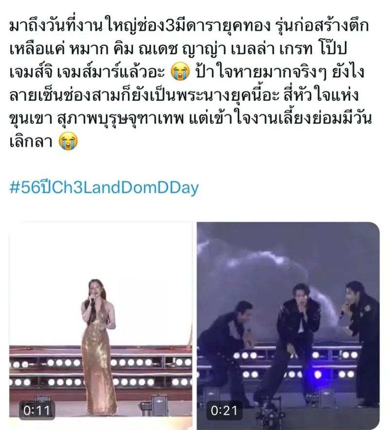 อย่างใน X แฮชแท็ก #56ปีCh3LandDomDDay ที่เริ่มสังเกตได้ชัดแล้วว่านางเอกระดับตัวแม่ในยุคก่อนหน้านี้ เริ่มหายไปอย่างเห็นได้ชัด ไม่ได้มาร่วมงานเหมือนในปีที่ผ่านมา และน้อยลงเข้าไปทุกที จนหลายคนตั้งข้อสงสัยว่า หมดสัญญาแล้วหรือยัง