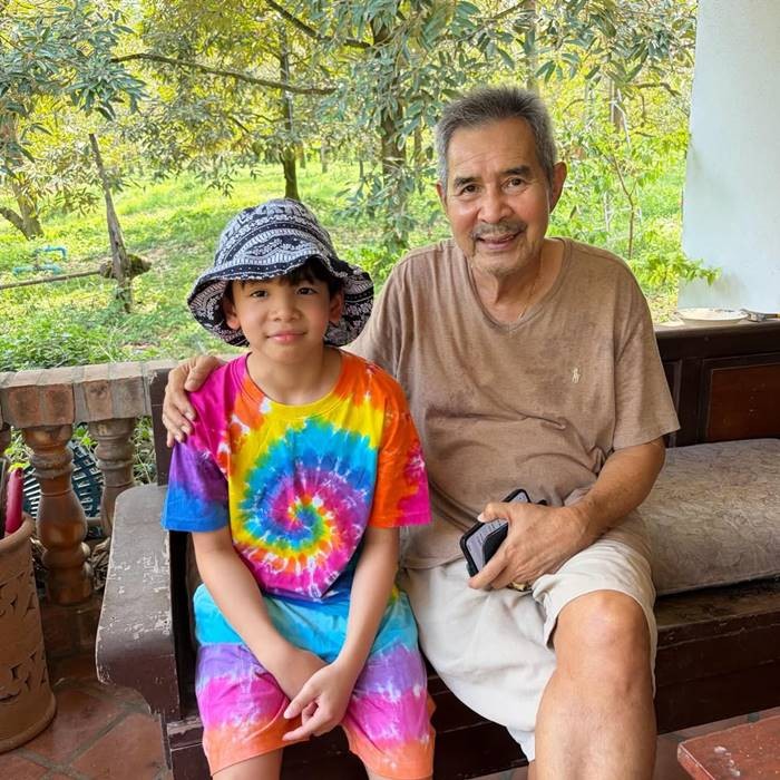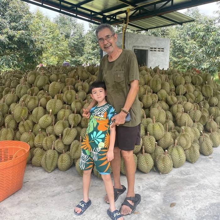 บรรยากาศในภาพเต็มไปด้วยความอบอุ่นของครอบครัว ทั้งคุณตา คุณยาย และหลานชาย ท่ามกลางสวนทุเรียน สวนตาตุ่ม ที่รายล้อมไปด้วยต้นทุเรียนจำนวนมาก และผลผลิตที่ดูน่ารับประทาน