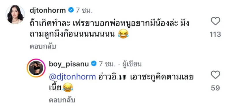 แต่ในความซึ้ง ก็มีความพีค เมื่อ ต้นหอม เข้ามาแซวว่า ถ้าลูกอยากมีน้องขึ้นมาจะทำยังไง ทำเอาบอยถึงกับตอบกลับทันที ว่า เอาซะคิดตามเลย
