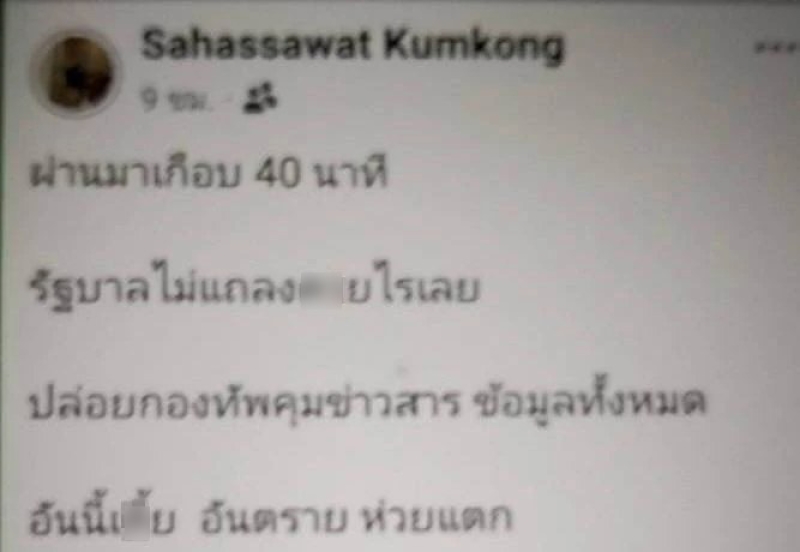 นอกจากนี้ นายสหัสวัต ยังโพสต์อีกด้วยว่า ผ่านมาเกือบ 40 นาที รัฐบาลไม่แถลง xวยไรเลย ปล่อยกองทัพคุมข่าวสาร ข้อมูลทั้งหมด อันนี้เxีย อันตราย ห่วยแตก ซึ่งหลังจากที่โพสต์ดังกล่าวได้เผยแพร่ออกไปแล้วนั้น ทำให้ชาวเน็ตไทยที่ได้เห็นโพสต์ดังกล่าว เกิดความไม่พอใจเป็นอย่างมาก เข้าไปถล่มคอมเม้นต์วิพากย์วิจารณ์กันอย่างหนัก