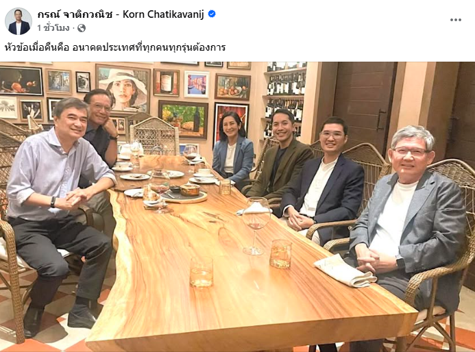 พร้อมกันนี้ นายกรณ์ ยังได้เผยแพร่ภาพขณะร่วมรับประทานอาหารกับ นายอภิสิทธิ์ เวชชาชีวะ อดีตหัวหน้าพรรคประชาธิปัตย์, ดร.สันติธาร เสถียรไทย และ ดร.สุวิทย์ เมษินทรีย์