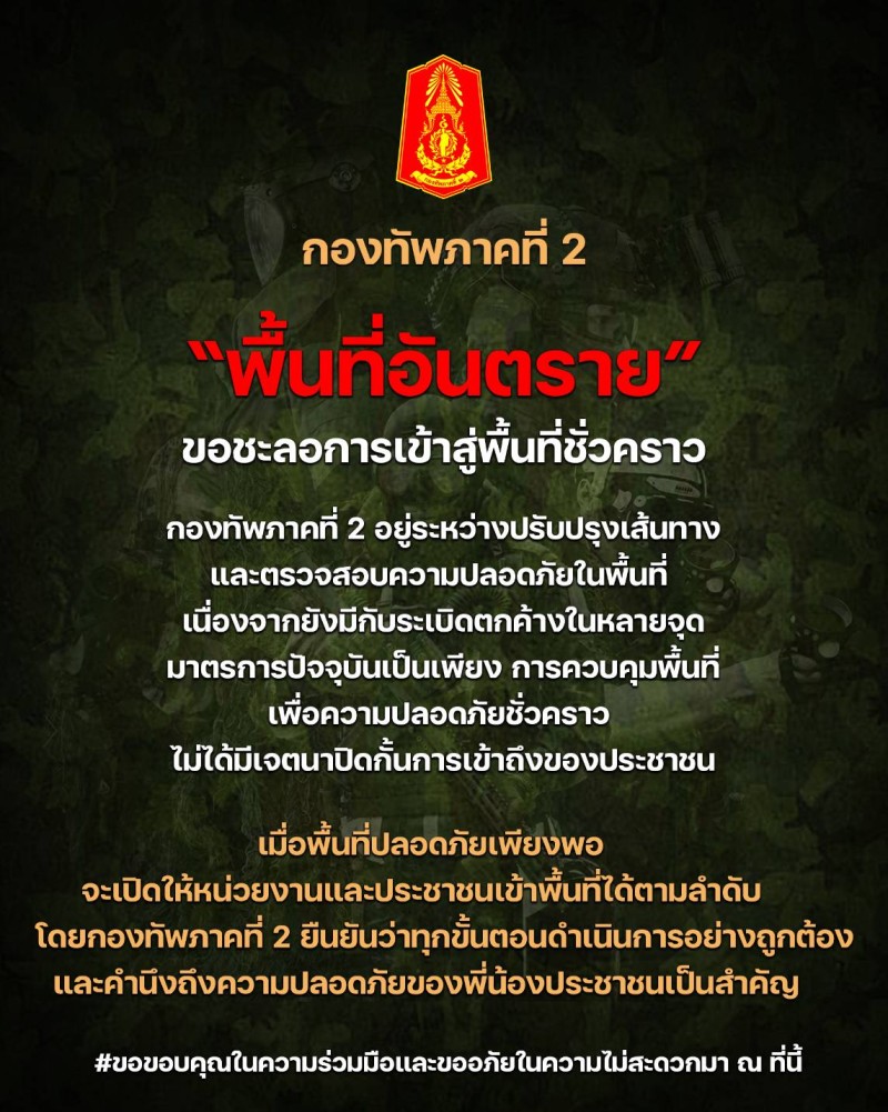 ด่วนที่สุด! กองทัพภาคที่ 2 ประกาศพื้นที่อันตรายแล้ว