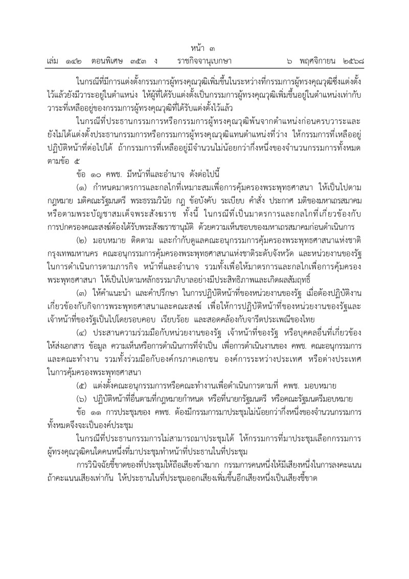 และโดยที่มีแนวโน้มที่จะเกิดการบิดเบือนคำสอนของพระพุทธศาสนา และการบ่อนทำลายพระพุทธศาสนาด้วยรูปแบบต่าง ๆ อันเป็นภัยต่อความมันคงของชาติ สังคม คุณธรรม จริยธรรม และส่งผลกระทบต่อสาธารณชน จึงสมควรให้มีระเบียบนี้ไว้ เพื่อให้การคุ้มครองพระพุทธศาสนา เป็นไปอย่างมีประสิทธิภาพ เกิดผลสัมฤทธิ์ สอดดคล้องกับแนวนโยบายแห่งรัฐและนโยบายของรัฐบาล