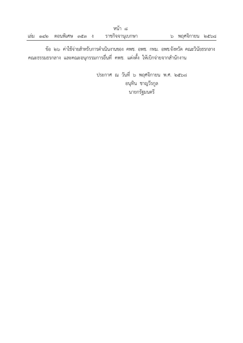 ประกาศ ณ วันที่ 6 พฤศจิกายน 2568 โดยมีนายอนุทิน ชาญวีรกูล นายกรัฐมนตรี เป็นผู้ลงนาม
