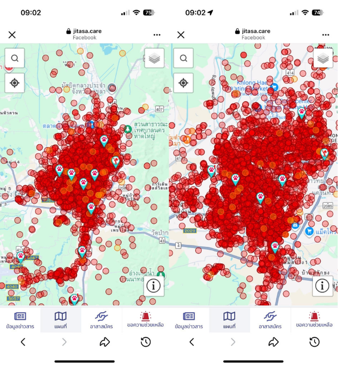 ภาพนี้คือ เคสขอความช่วยเหลือในพื้นที่หาดใหญ่ ตลอด3-4วันที่ผ่านมา