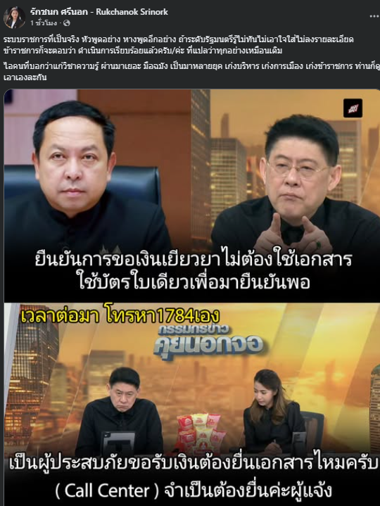 เมื่อวันที่ 1 ธันวาคม 2568 ไอซ์ รักชนก ศรีนอก สมาชิกสภาผู้แทนราษฎร พรรคประชาชน ออกมาโพสต์ข้อความผ่านเฟซบุ๊กส่วนตัว วิพากษ์การทำงานของระบบราชการไทย โดยใช้กรณีตัวอย่างจากรายการ กรรมกรข่าว คุยนอกจอ ของสรยุทธ สุทัศนะจินดา เพื่อสะท้อนปัญหาความไม่สอดคล้องระหว่างนโยบายของผู้บริหารระดับสูงและการปฏิบัติจริงของเจ้าหน้าที่หน้างาน