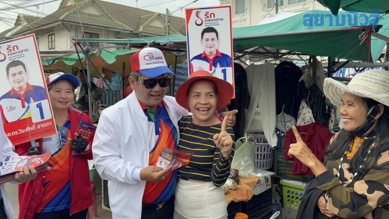 วันที่ 14 ธันวาคม 68 ผู้สื่อข่าวรายงานว่า รศ.ดร.วิระศักดิ์ ฮาดดา ผู้สมัคร ชิงตำแหน่ง นายก อบต.คลองสาม หมายเลข 1 ทีมรักคลองสาม พร้อมทีมงานผู้ช่วยหาเสียงออกเดินเท้าพบปะประชาชนภายในตลาดสดไทยสมบูรณ์ 3 และ ตลาดเช้าภายในหมู่บ้านพฤกษาบี ม.4 ต.คลองสาม อ.คลองหลวง จ.ปทุมธานี โดยแจกใบแนะนำตัวและใบนโยบายในการหาเสียงแจกให้กับประชาชนที่มาเดินจับจ่ายซื้อของในตลาดสดในช่วงเช้า