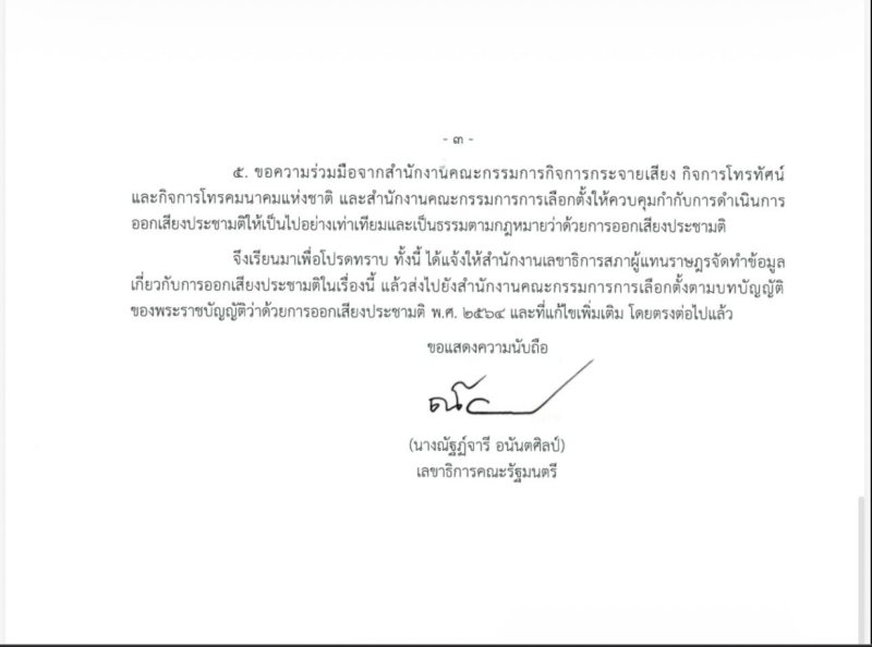 จึงเรียนมาเพื่อโปรดทราบ ทั้งนี้ ได้แจ้งให้สำนักงานเลขาธิการสภาผู้แทนราษฎรจัดทำข้อมูลเกี่ยวกับการออกเสียงประชามติในเรื่องนี้ แล้วส่งไปยังสำนักงานคณะกรรมการการเลือกตั้งตามบทบัญญัติของพระราชบัญญัติว่าด้วยการออกเสียงประชามติ พ.ศ.2564 และที่แก้ไขเพิ่มเติม โดยตรงต่อไปแล้ว