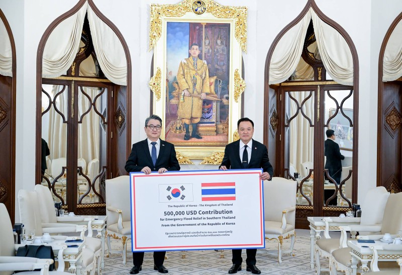 วันที่ 23 ธันวาคม 2568 เพจเฟซบุ๊ก Army Military Force รายงานว่า นายอนุทิน ชาญวีรกูล นายกรัฐมนตรีและรมว.มหาดไทย พบหารือ นายพัก ยงมิน (H.E. Mr. Park Yong-min) เอกอัครราชทูตสาธารณรัฐเกาหลีประจำประเทศไทย รับมอบเงินช่วยเหลืออุทกภัยภาคใต้ของประเทศไทย จากรัฐบาลเกาหลีใต้ จำนวน 500,000 ดอลลาร์สหรัฐ (15,580,000 บาท) ผ่านโครงการความร่วมมือกับกรมความร่วมมือระหว่างประเทศ กระทรวงการต่างประเทศ เพื่อสนับสนุนการฟื้นฟูพื้นที่ ที่ได้รับผลกระทบ รวมถึงการจัดหาอุปกรณ์ทางการแพทย์และสิ่งของจำเป็น