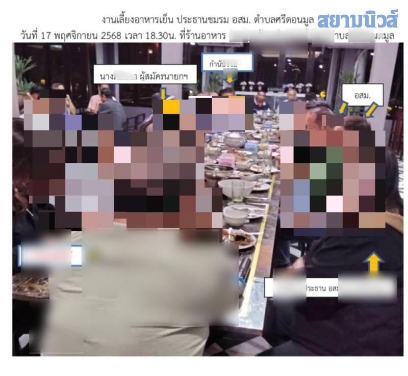 รายงานระบุว่า เมื่อวันที่ 17 พฤศจิกายน 2568 ที่ผ่านมา ณ ร้านอาหารแห่งหนึ่งในตำบลศรีดอนมูล ได้มีการจัดงานเลี้ยงที่ถูกระบุว่าเป็น งานเปิดตัวผู้สมัครหมายเลข 2 โดยความน่าสนใจไม่ได้อยู่ที่ตัวผู้สมัครเพียงอย่างเดียว แต่กลับอยู่ที่รายชื่อผู้เข้าร่วมงาน ซึ่งประกอบไปด้วย กำนัน ผู้ใหญ่บ้าน ตัวแทน อสม. และผู้นำกลุ่มแม่บ้าน จำนวนมาก ซึ่งบุคคลเหล่านี้ถือเป็น ฟันเฟือง สำคัญในการชี้นำมวลชนในพื้นที่ โดยเหตุการณ์นี้เกิดขึ้นเพียงไม่กี่วันก่อนการรับสมัครเลือกตั้ง ซึ่งจัดขึ้นระหว่างวันที่ 1-5 ธันวาคม 2568 จึงนำมาสู่คำถามสำคัญจากสังคมว่านี่คือการจงใจฝ่าฝืนกฎหมายเลือกตั้ง มาตรา 65 เรื่องการจัดเลี้ยงเพื่อจูงใจผู้มีสิทธิเลือกตั้งหรือไม่?