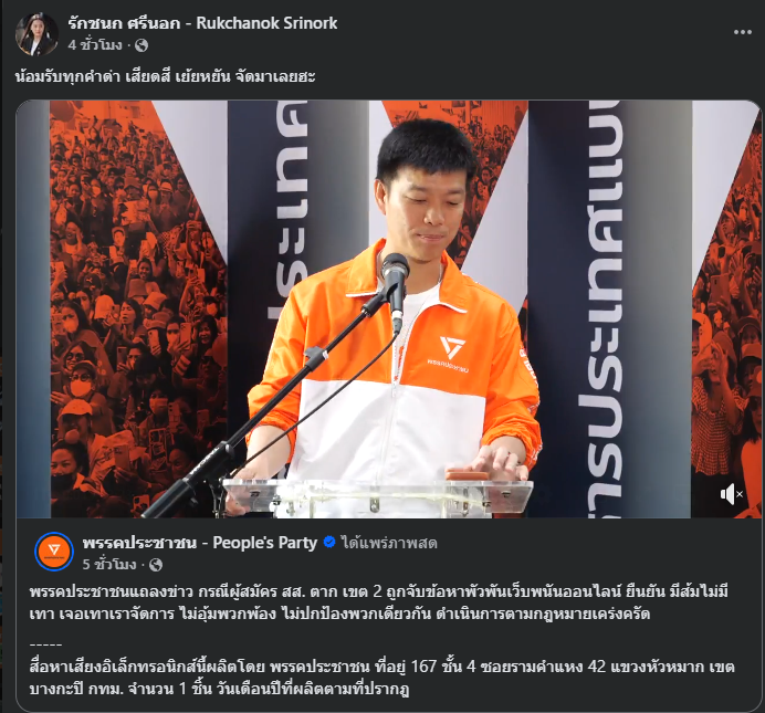 จากกรณี นายรัชต์พงศ์ อายุ 32 ปี ผู้สมัคร สส.ตาก พรรคประชาชน ถูกจับกุมตามหมายจับศาลอาญาที่ 196/69 ลงวันที่ 13 มกราคม 2569 ในข้อกล่าวหาร่วมกันจัดให้มีการเล่นหรือทำอุบายล่อ ช่วยประกาศโฆษณา หรือชักชวนให้ผู้อื่นเข้าเล่นพนันทางสื่ออิเล็กทรอนิกส์โดยไม่ได้รับอนุญาต รวมถึงสมคบกันฟอกเงิน และร่วมกันฟอกเงิน