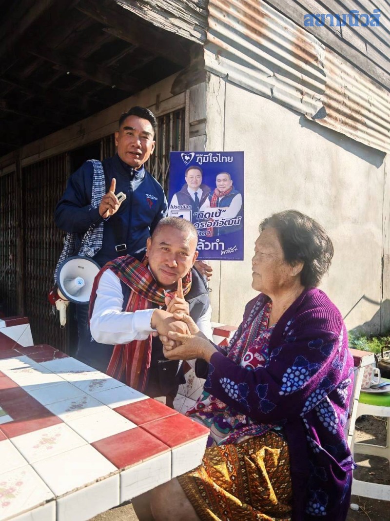 ทิดเป้ ดร.อภิวัฒน์ จ่าตา เขต 5 ขอนแก่น แบกป้าย ไปหา ชาวบ้าน รับฟังปัญหา