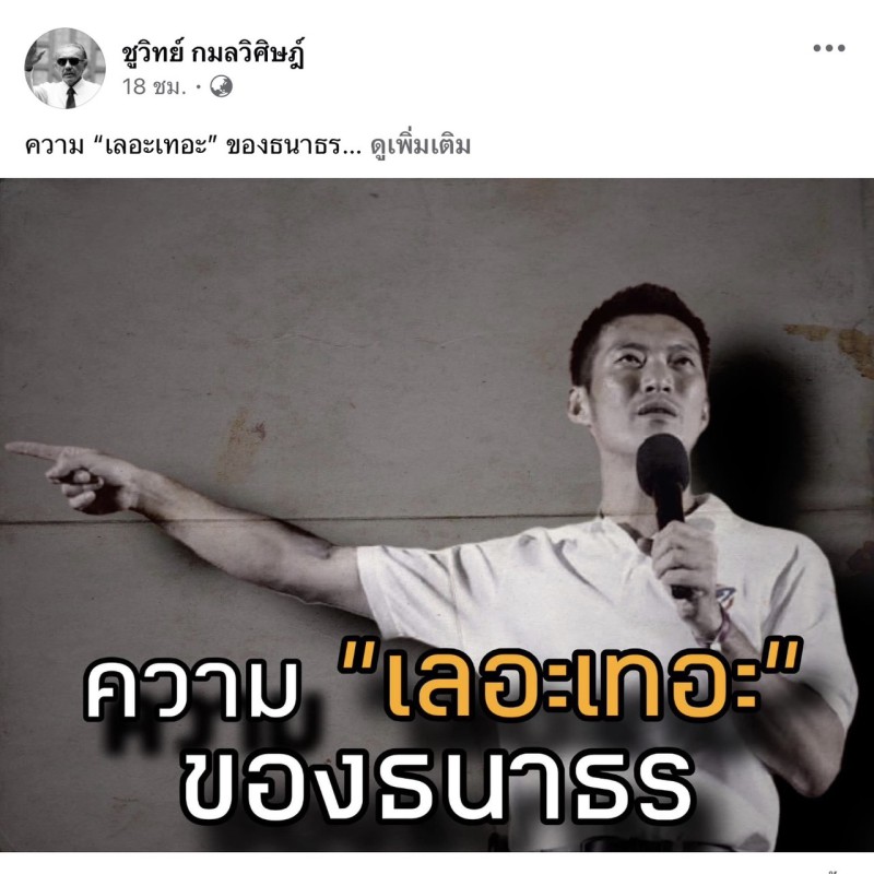 เมื่อวันที่ 20 ม.ค. นายชูวิทย์ กมลวิศิษฎ์ ได้ออกมาโพสต์ข้อความวิพากษ์วิจารณ์ นายธนาธร จึงรุ่งเรืองกิจ หลังโดนนายธนาธรตำหนิว่าเลอะเทอะ โดยครั้งนี้นายชูวิทย์ได้รวบรวมพฤติกรรมและเหตุการณ์ต่างๆ ที่ผู้เขียนมองว่าเป็นความผิดพลาดและความไม่เป็นมืออาชีพของนายธนาธร โดยนายชูวิทย์ ได้ระบุข้อความว่า