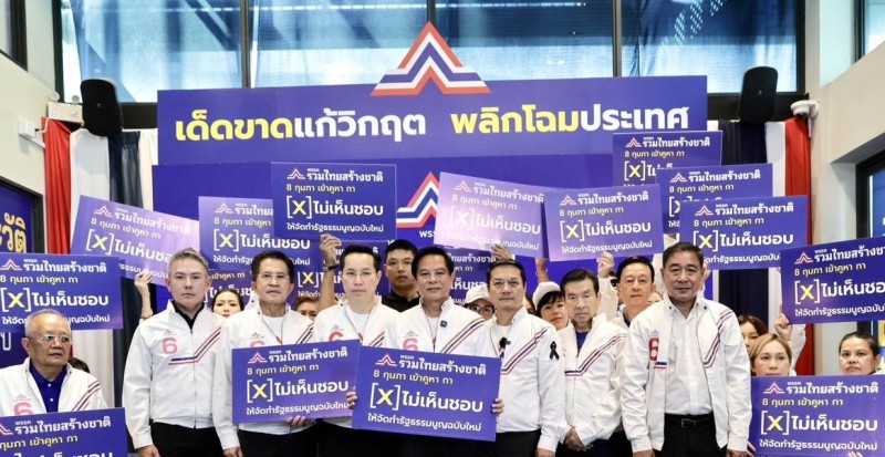 วันที่ 22 มกราคม 2569 นายพีระพันธุ์ สาลีรัฐวิภาค หัวหน้าพรรครวมไทยสร้างชาติ พร้อมด้วยแกนนำพรรค อาทิ นายชัชวาลล์ คงอุดม เลขาธิการพรรค นายวิทยา แก้วภราดัย นายอรรถวิชช์ สุวรรณภักดี นายนราพัฒน์ แก้วทอง และพันเอกเฟื่องวิชชุ์ อนิรุทธเทวา รองหัวหน้าพรรค ร่วมแถลงจุดยืนไม่เห็นชอบต่อแนวคิดการทำประชามติเพื่อจัดทำรัฐธรรมนูญฉบับใหม่ โดยระบุว่าการตั้งคำถามประชามติในลักษณะปลายเปิด ไม่มีกรอบหรือหลักประกันที่ชัดเจน เปรียบเสมือนการ เซ็นเช็คเปล่า และอาจนำไปสู่การยกเลิกรัฐธรรมนูญปี 2560 ทั้งฉบับ