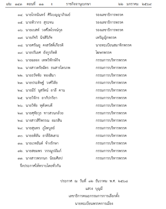 ๑๘. นายศรัญญู คงสวัสดิ์เกียรติ นายทะเบียนสมาชิกพรรค