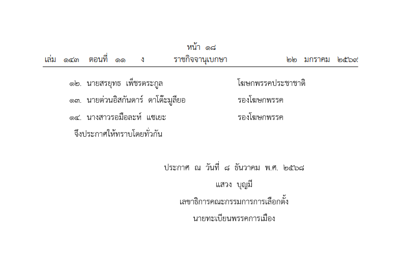 ประกาศ ณ วันที่ ๘ ธันวาคม พ.ศ. ๒๕๖๘